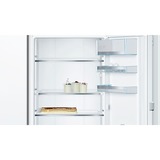 Der vollintegrierbare Kühlschrank Bosch KIF51AFE0 stellt einen Gesamtnutzinhalt von 220 Litern zur übersichtlichen Lagerung frischer Lebensmittel zur Verfügung. Ausgestattet ist er mit fünf Abstellflächen aus Sicherheitsglas, davon vier höhenverstellbar und eine teilbar mit Parkmöglichkeit im Gerät (VarioShelf), sowie vier Türfächern, davon ein Butter-/Käsefach. Zwei VitaFresh pro 0°C Schubladen - davon eine "taufrisch" mit aktiver Feuchteregulierung für Obst und Gemüse und eine für Fisch und Fleisch - halten die Lebensmittel bis zu dreimal länger frisch und knackig. Die intelligente Sensortechnik FreshSense sorgt im gesamten Kühlraum für eine konstante Temperatur und mit der SuperKühlen-Funktion wird die Temperatur für eine eingestellte Zeit gesenkt, sodass beim Einlagern wärmerer Lebensmittel ein unerwünschter Temperaturanstieg bereits gekühlter Speisen verhindert wird. Mit einem Stromverbrauch von 139 kWh im Jahr ist der KIF51AFE0 in die Energieeffizienzklasse E eingestuft.Art.-Nr.: 1668714