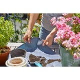 Die neuen GARDENA Pflanzmatten helfen dabei, dass es auf Balkon und Terrasse grünt und blüht, und beim Umtopfen alles sauber bleibt. Erde und Pflanzenteile, die danebenfallen, werden aufgefangen und können anschließend ganz leicht entsorgt werden. Die Kanten der Pflanzmatte S können auf Wunsch mit Druckknöpfen aufgestellt werden, dadurch entsteht ein Rand, und die Erde und Pflanzabfälle fallen nicht mehr auf den Tisch oder den Boden. Den Inhalt kann man anschließend einfach über dem Kompost oder dem Mülleimer entleeren. Die city gardening Pflanzmatte S misst 80cm x 80cm und ist aus wasserabweisendem Material hergestellt. Sie lässt sich einfach reinigen, ist unempfindlich gegen Schmutz und weicht nicht auf.Art.-Nr.: 1491520