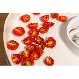 Mit dem Dörrautomaten DA 750 können Obst, Gemüse, Pilze oder Kräuter besonders schonend konserviert werden. Das Heizgebläse sorgt für permanent aktive Warmluftzirkulation und die konstante Temperatur für gleichmäßige Ergebnisse. So werden Geschmack, Nährwerte und Mineralien erhalten - ganz ohne chemische Zusätze und Zucker. Gesundheitsbewusste und Allergiker stellen selbst getrocknete Zutaten für Müsli, Suppen und Saucen her. Naschkatzen versorgen sich mit gesunden Snacks, ideal zum Knabbern unterwegs. Die drei Leistungsstufen und die Zeitschaltuhr mit Abschaltautomatik sorgen für Bedienkomfort. Das hochwertige Kunststoffgehäuse überzeugt durch leichte Reinigung.Art.-Nr.: 1076730