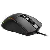 | Besonderheiten | Linke und rechte Maustaste aus PBT | Lift-off-Distanz: 1–2 mm | DPI-Stufen: 400, 1.200, 2.400, 3.600, 4.800, 6.400 | Unterbodenbeleuchtung | Transparenter Unterseite | Textilummanteltes Kabel | Goldbeschichteter USB-Stecker | ||