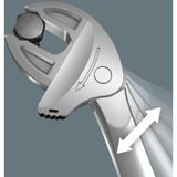 Der selbstjustierende Maulschlüssel Joker 6004 L von Wera ist ein universelles Schraubwerkzeug mit großem Einsatzspektrum. Er deckt mehrere metrische und zöllige Abmessungen ab und stellt sich automatisch auf die unterschiedlichen Schraubengrößen ein. Er packt sicher zu, beschädigt nichts und erlaubt eine hohe Arbeitsgeschwindigkeit. Durch die stufenlos parallel geführten Backen werden mehrere Maulschlüssel-Einzelgrößen ersetzt. Die benötigte Größe stellt sich beim Ansetzen an der Sechskant-Mutter oder -Schraube stufenlos und automatisch von selbst ein. Der integrierte Hebelmechanismus klemmt die Schraube oder Mutter zwischen den Backen sicher ein, was die Gefahr des Abrutschens deutlich verringert. Die parallelen glatten Backen des Joker 6004 erzeugen eine Flächenpressung und können dadurch das "Runddrehen" der Mutter oder des Schraubenkopfes verhindern, was bei der Kraftübertragung über die Ecken auftreten kann. Für schnelles und durchgängiges Schrauben ohne Absetzen sorgt die integrierte Ratschenfunktion. Durch die Nutzung der Eckweiten-Prismen ist ein Rückschwenkwinkel von nur 30° realisierbar. Die Ein-Schenkel-Konstruktion in Verbindung mit der Ratschenfunktion und dem Eckweitenprisma ermöglicht das Arbeiten auch in engen Bauräumen. Der verstellbare Joker 6004 L ist das universelle selbstjustierende Schraubwerkzeug.