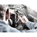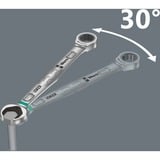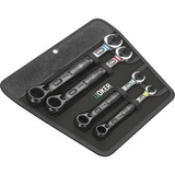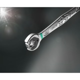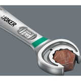 Der umschaltbare Maul-Ringratschenschlüssel Joker Switch (hier im 4-teiligen Set) von Wera ist ein Multitalent unter den Maulschlüsseln. Er bietet entscheidende Vorzüge, zum einen ist es die Haltefunktion, die die Zuführung von Schraube und Mutter ohne Hilfswerkzeuge möglich macht, indem ein Herausfallen aus dem Maul effektiv vermieden wird. So kann das Gewinde schnell und präzise eingefädelt werden. Zum anderen verfügt der Maulschlüssel Joker Switch über einen Endanschlag, der ein Abrutschen des Schlüssels vom Schraubenkopf nach unten verhindert. Das erleichtert nicht nur das Schrauben, sondern so kann auch viel mehr Kraft aufgebracht werden. Hinzu kommt die auswechselbare, gehärtete Metallplatte mit den extrem harten Metallspitzen, die nicht von der Schraube abrutschen. Aus der besonderen Verzahnung in Verbindung mit der Doppel-Sechskantgeometrie entsteht ein formschlüssiger Kontakt mit der Mutter, und ein Abrutschen bei hohen Drehmomenten wird wirkungsvoll vermieden. Der besonders kleine Rückholwinkel von nur 30 Grad, der Verschraubungen auch in sehr engen Montagesituationen zulässt, gehört ebenfalls zu den Vorteilen des Ringratschen-Maulschlüssels. Zusammen mit seinem geraden Kopf macht der Joker so das Wenden des Schlüssels überflüssig. Seine Ratschenmechanik auf der Ringseite weist eine außergewöhnlich hohe Feinverzahnung mit 80 Zähnen auf und sorgt für Flexibilität auch in engen Bauräumen. Der Maul-Ringratschen-Schlüssel hat eine Farbkennzeichnung und eine eingeschmiedete Größenangabe für einfaches Finden des gewünschten Joker Switch. Das Set wird in einer robusten Falttasche geliefert.
